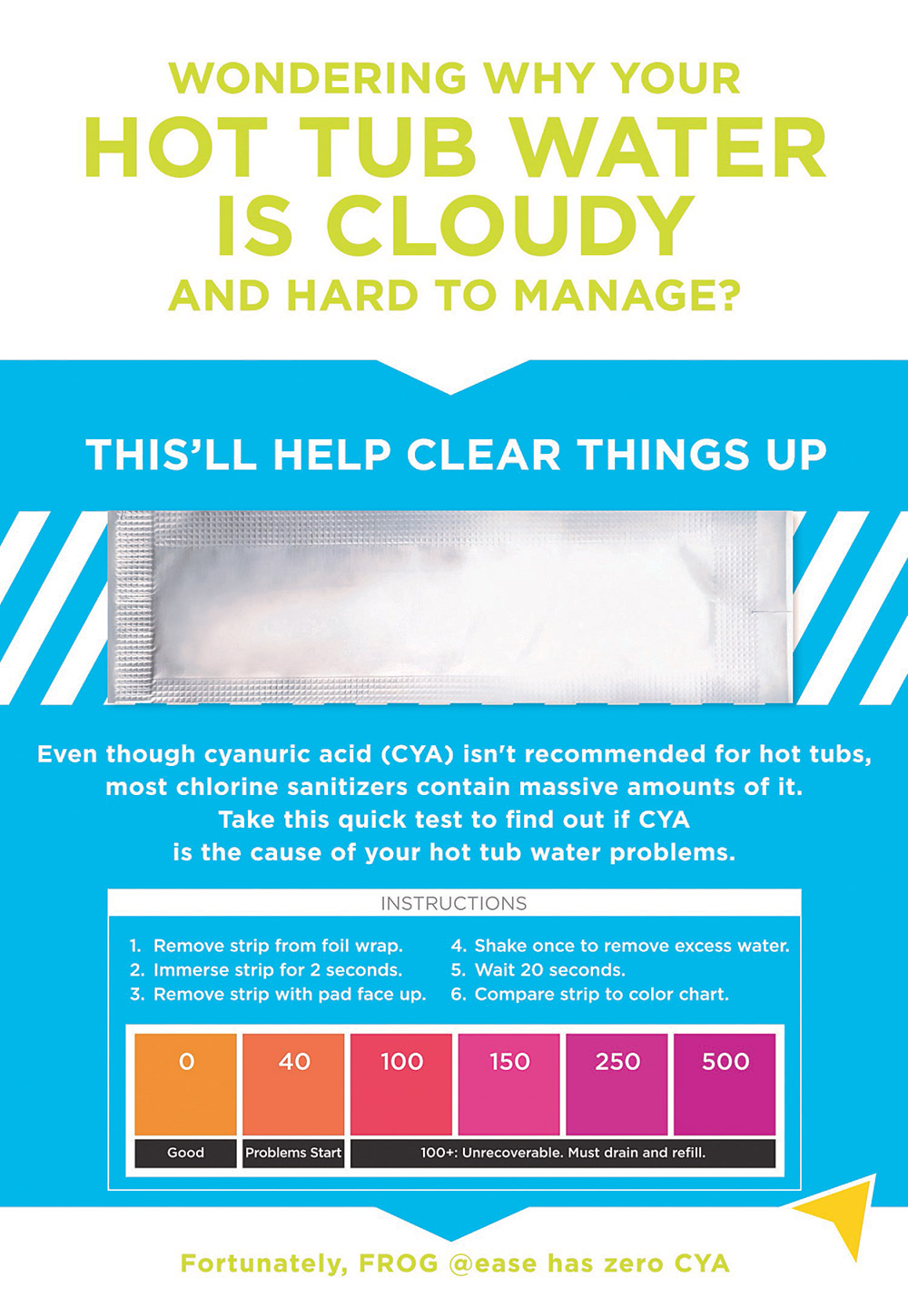 The target range for Free. Wash your hands dry them thoroughly before handling the strips. Chlorine is an important part of hot tub water care.